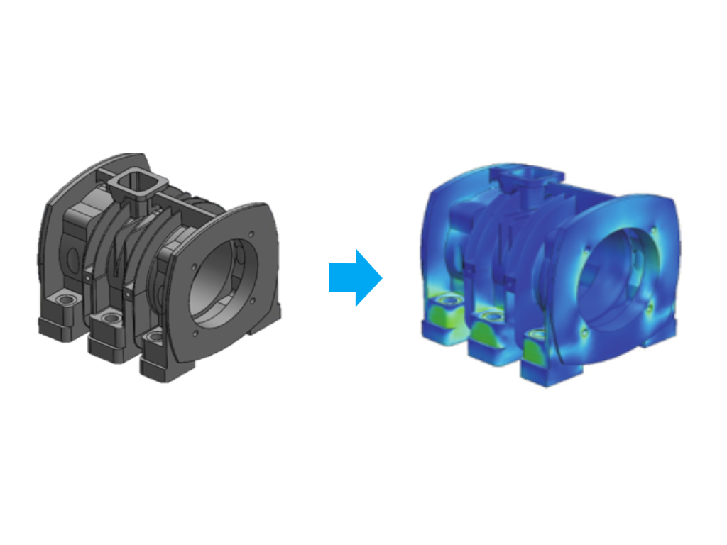 To carry out static stress analysis of the housing of unbalance vibratory motor in order to study safety of the design, at the same time, study the possibility of material optimization.