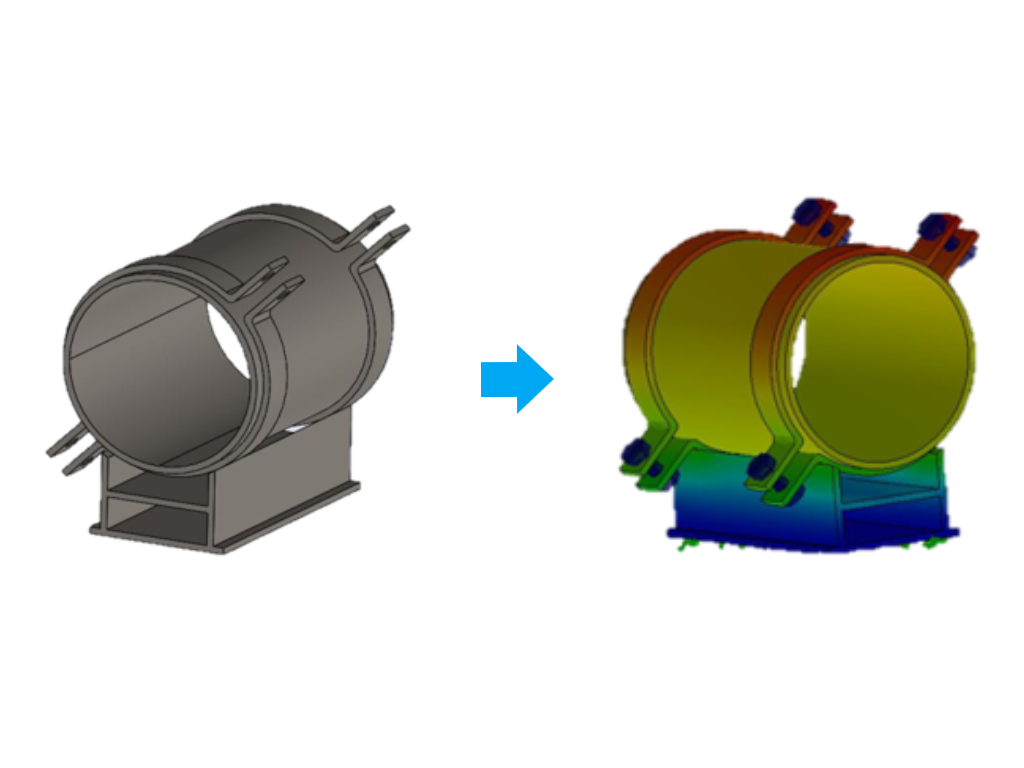 Process & Petrochemical Industry uses pipes having diameter of 1.2 m. The dead weight of 20KN was acting on clamp. The maximum lateral force acting on the clamp was 60KN. The project consists of tress analysis of bolted pipe clamp using Finite Element Analysis. The correlation between lab results and CAE results of inducing stress values were more than 85%.